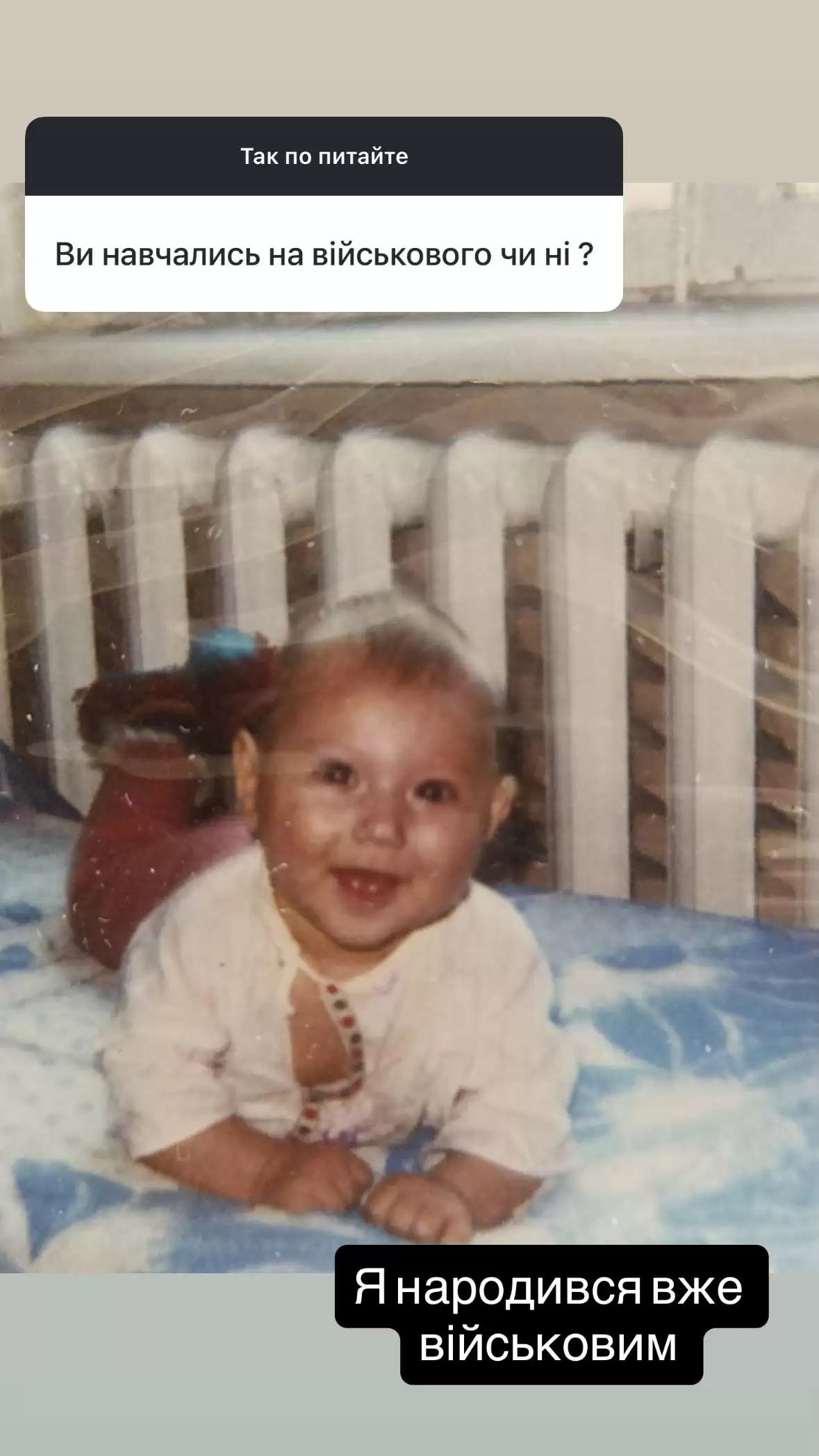 Так, у своєму Instagram в stories Дмитро відповідав на запитання підписників. І один із користувачів запитав у нього, вчився він на військовослужбовця чи ні. У відповідь він поділився фото з раннього дитинства і пожартував:
