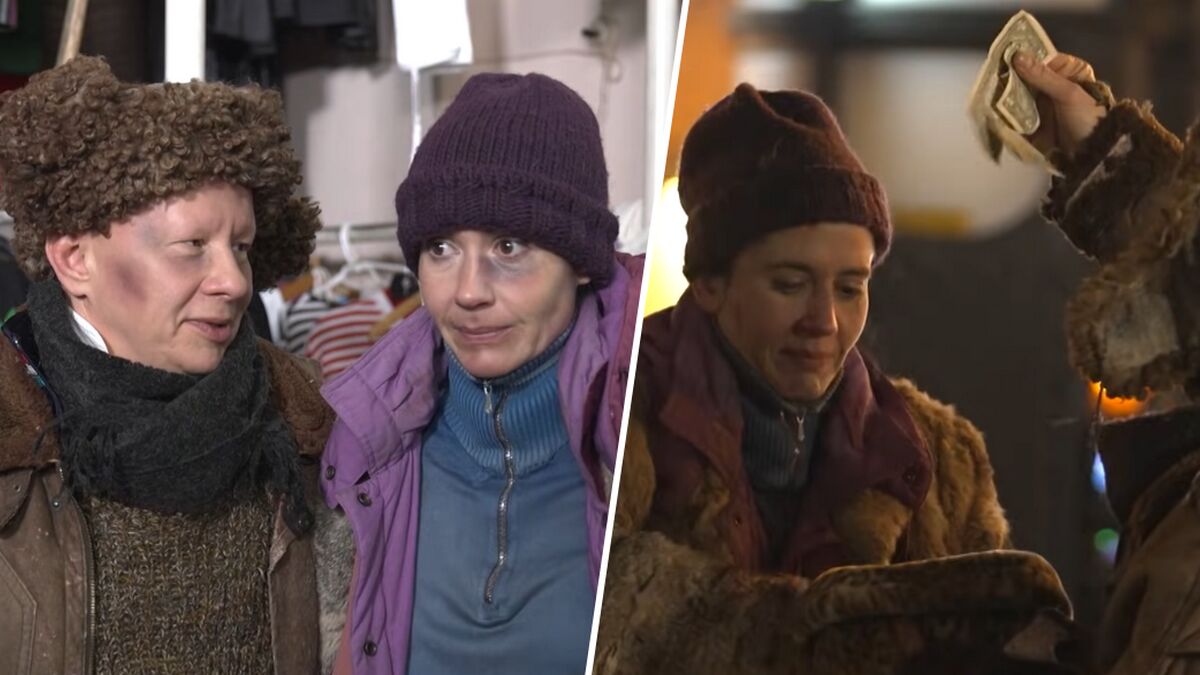 Щоб їх не впізнали, зірки наклали грим і вдягнули старий одяг, перетворившись на пару жебраків. Проте замість того, щоб просто просити гроші, вони влаштували невеликий концерт: грали на гітарі та співали. Ця акція відбулася у межах проєкту Гончаренка «Головна роль», передає Інформатор.