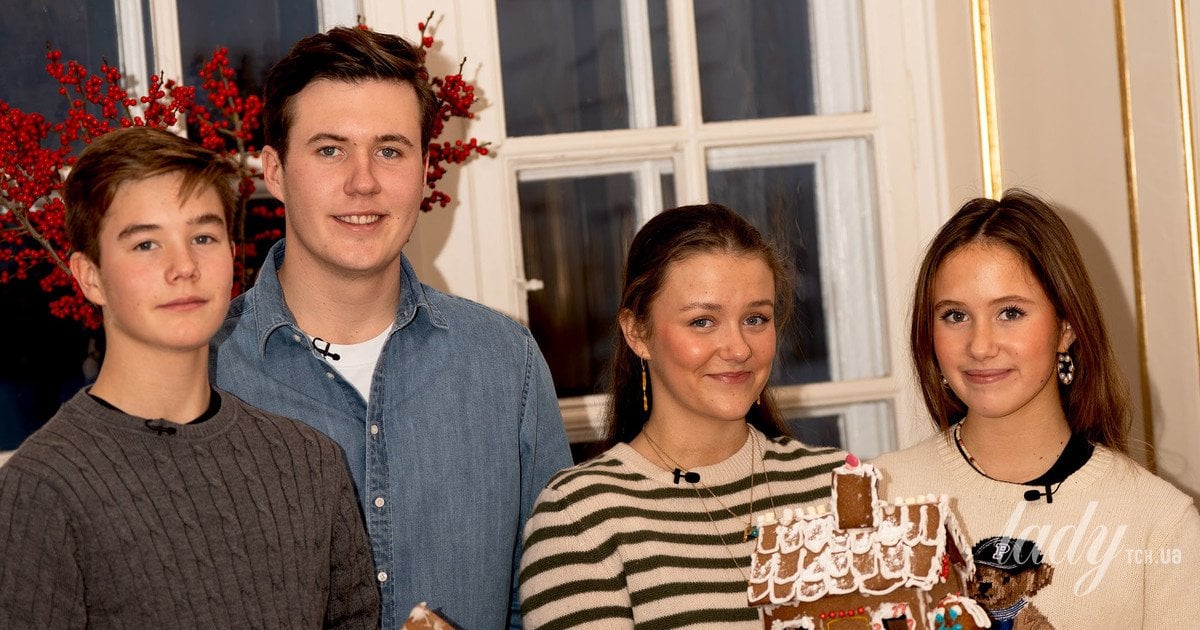 У Instagram данська королівська сім’я показала, як четверо дітей королеви Мері та короля Фредеріка X будували різдвяний будиночок з печива у палаці Фредеріка VIII в Амалієнборгу.