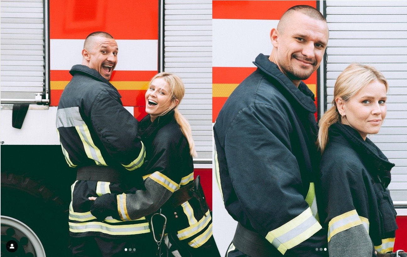 Тарас Цимбалюк у своєму Інстаграм-акаунті поділився фото з колегою по зніманнях Катериною Кузнецовою. Обоє вбрані у форму рятувальників та ніжно обіймаються. При цьому актор звернувся до своєї коханої Світлани Готочкіної: