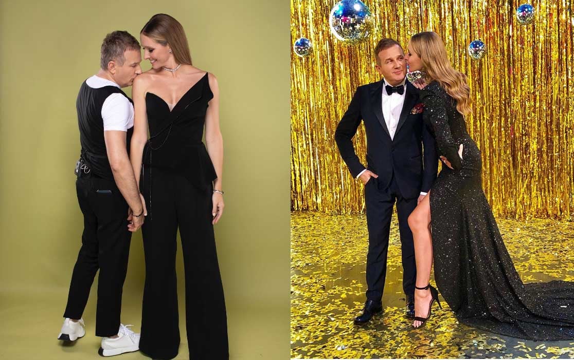 Під час чергової фотосесії, де Катерина вбралася у чорний комбінезон із відкритим декольте, Юрій не стримався й торкнувся оголеного плеча коханої. На іншій світлині вже Осадча, пікантно виставивши ніжку з-під довгої сукні, чмокнула коханого чоловіка у щічку.