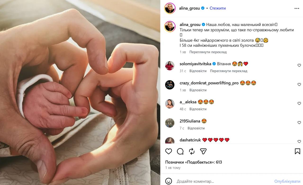 Зараз з молодою мамою все добре. Аліна Гросу вдало народила, і її хлопчик абсолютно здоровий.